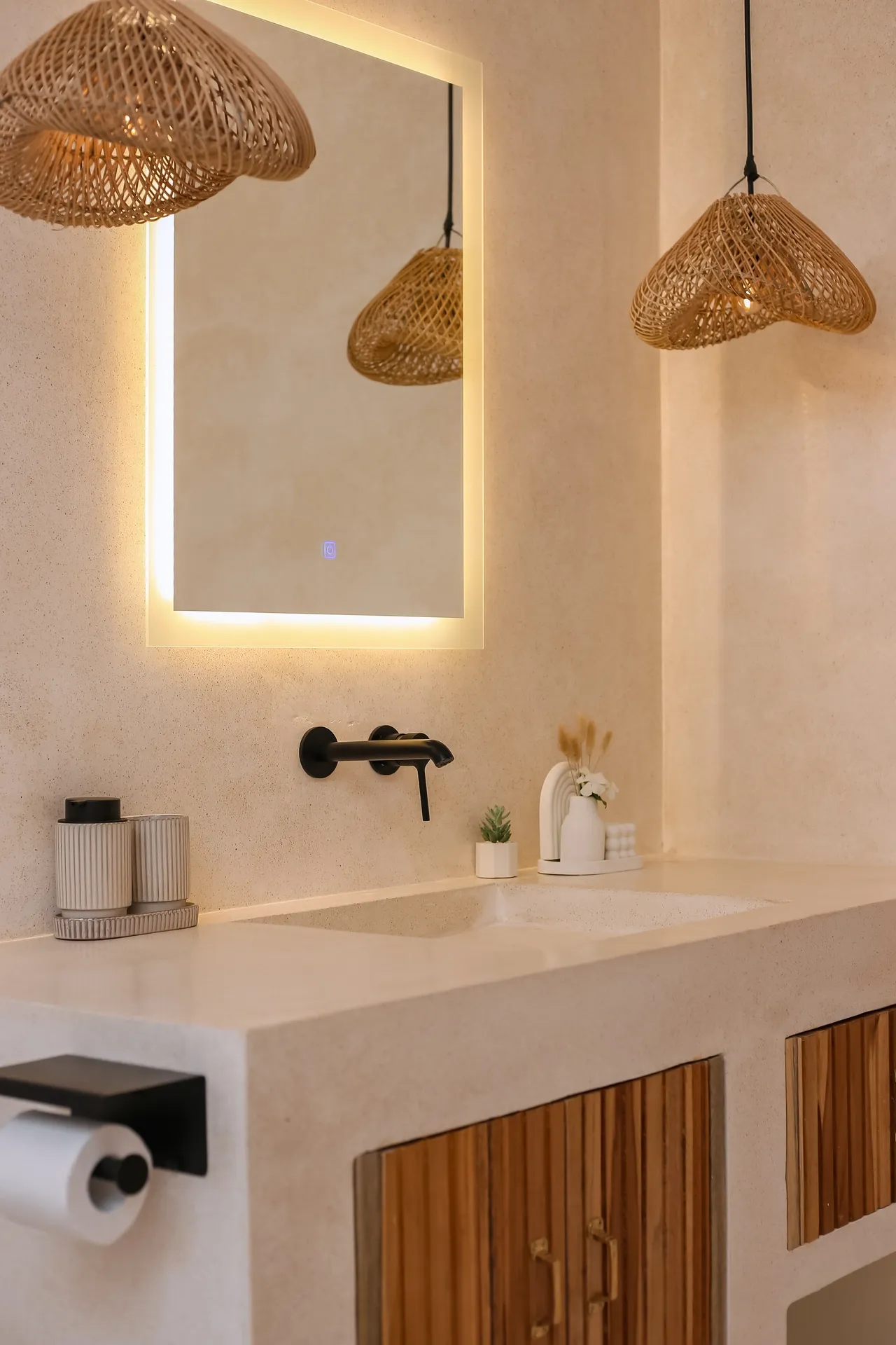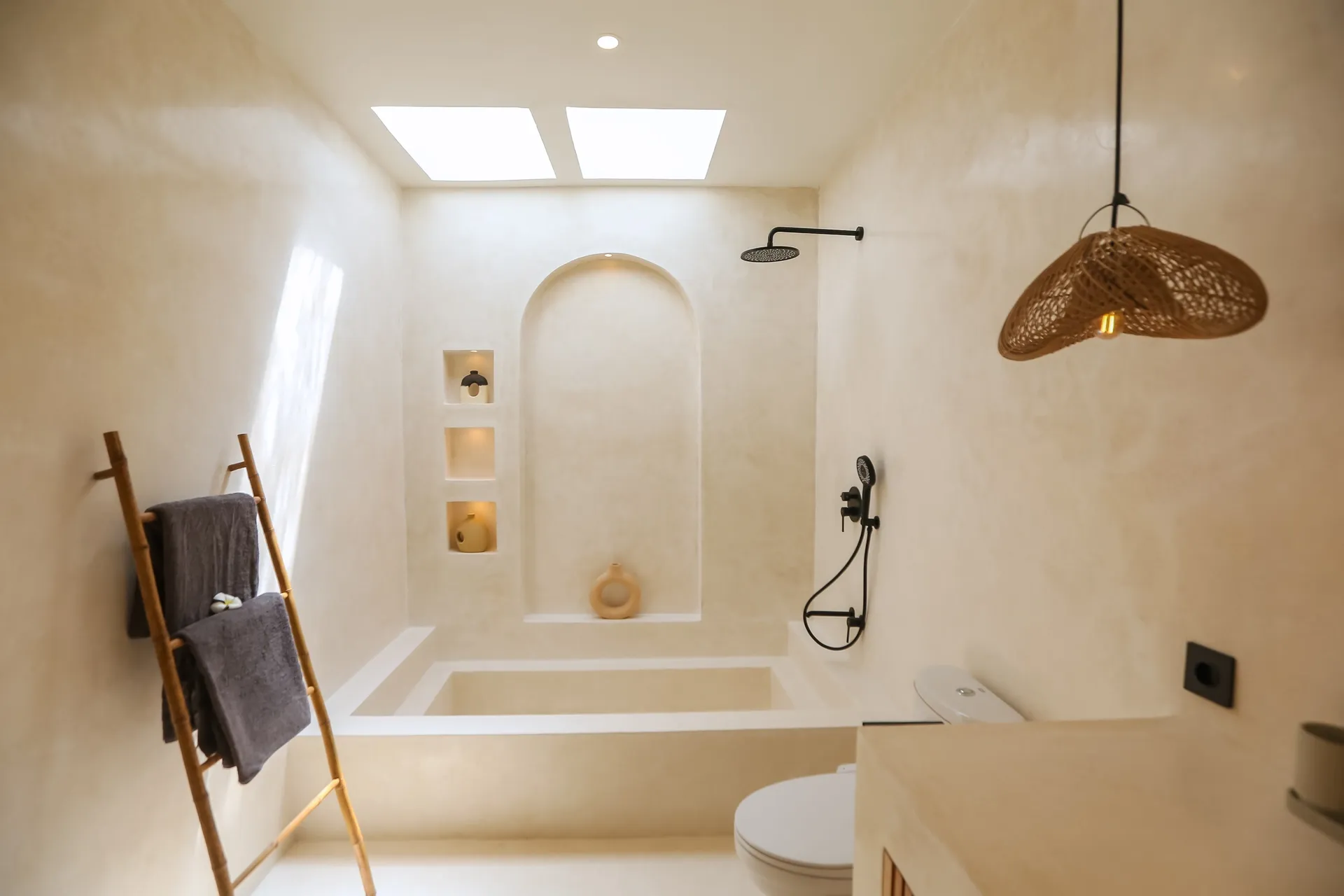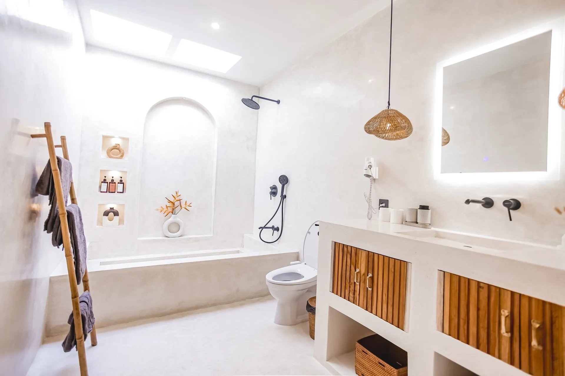 La villa in dettaglio: un’oasi privata dal design mediterraneo. • La villa si sviluppa su un terreno di 100 metri quadrati ed è situata in un contesto lussureggiante. • Design ispirato alle atmosfere mediterranee. Estetica calda, luminosa e minimalista. • Finiture di alta qualità e ampia zona esterna, dotata di una splendida piscina privata.